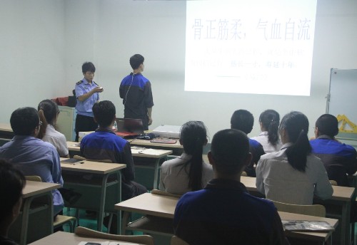 講座中,潘老師緊扣人民關(guān)心的健康話題,用形象生動的語言告訴普康集團(tuán)職工面對意外情況如何自救和施救,詳細(xì)講解了人工呼吸、心臟復(fù)蘇等科學(xué)急救方法。并根據(jù)目前的霧霾、甲醛等環(huán)境污染的現(xiàn)狀,提出了針對性的措施。同時針對普康集團(tuán)職工實(shí)際情況,講解了肩周炎、頸椎病、肥胖等職業(yè)病的預(yù)防保健知識。和與會職工開展了多種形式的現(xiàn)場互動,并現(xiàn)場示范中醫(yī)穴位理療,氣氛歡快活躍。