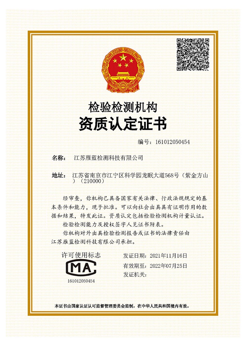 ? 江蘇雁藍檢測科技有限公司 2021 All Rights Reserved.
